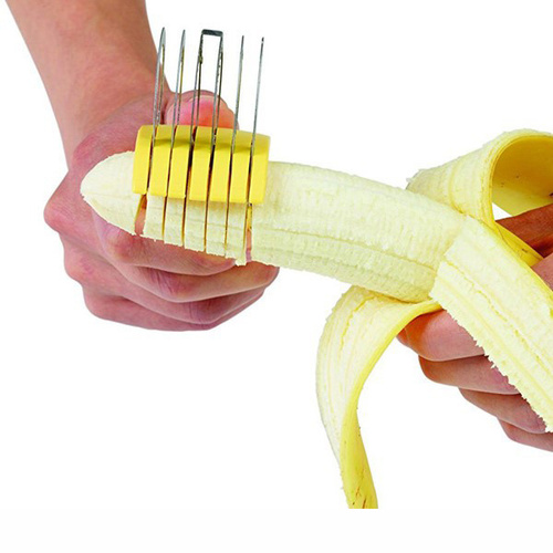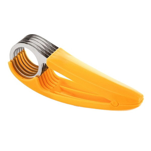 اسلایسر موز وسیله ای کار آمد برای حلقه کردن موز و خیار میباشد. تیغه استیل و تیز این محصول با یک حرکت به راحتی موز را حلقه کرده و میتوان از این ابزار برای میوه آرایی و شیرینی پزی استفاده کرد.